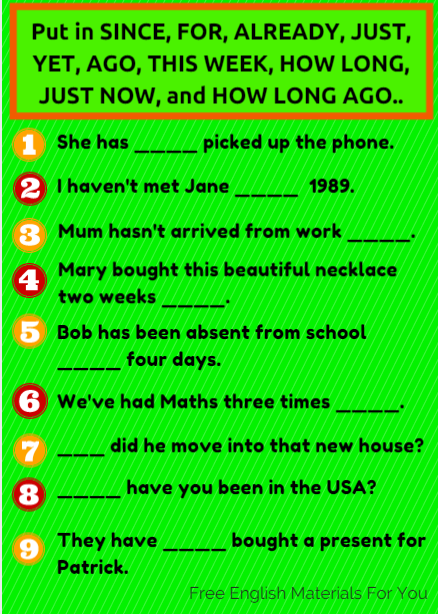 Click here for an interactive version of this quiz: Test – Time adverbs/expressions