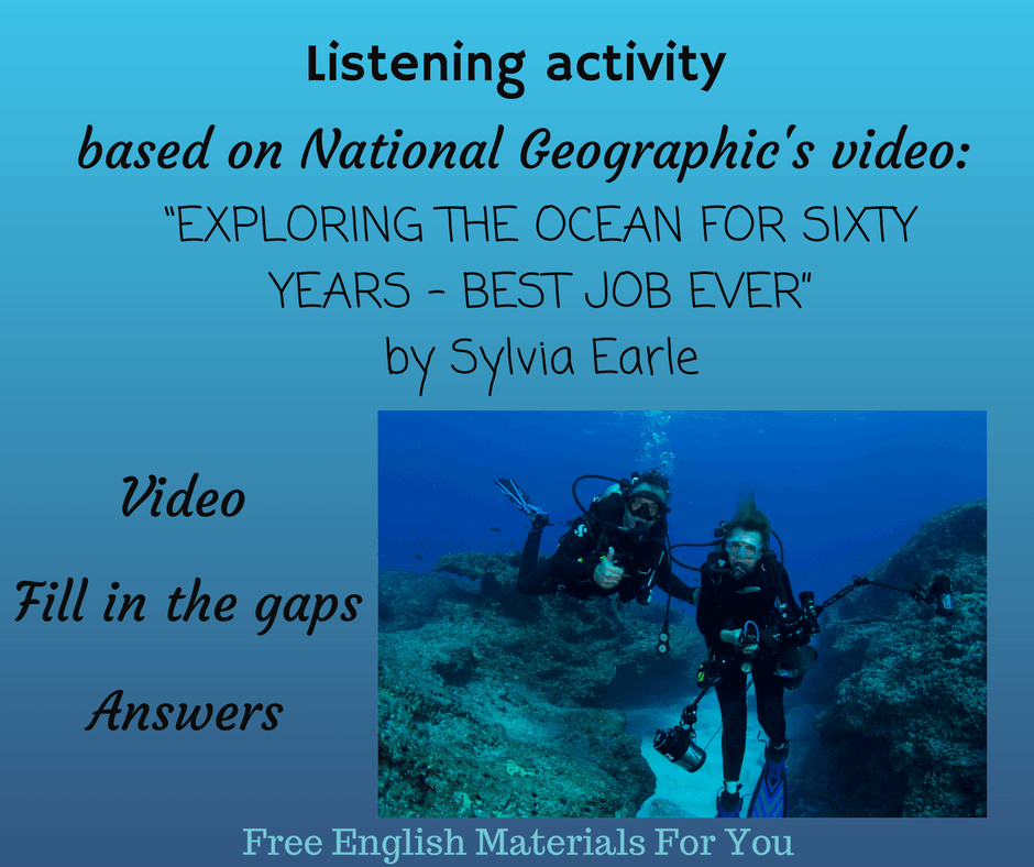 Listening Activity based on the NATIONAL GEOGRAPHIC’s video –“EXPLORING THE OCEAN FOR SIXTY YEARS – BEST JOB EVER” by Sylvia Earle